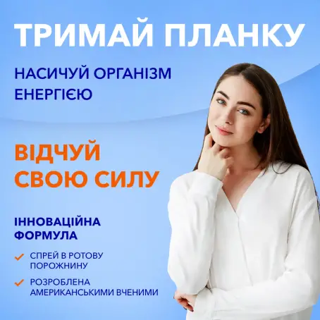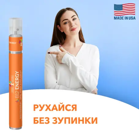 - Вітамін В12 в інноваційній формі спрею, що забезпечить кращу засвоюваність та виявить високий рівень енергії, підтримає ментальну ясність, знизить симптоми депресії та дратівливості.