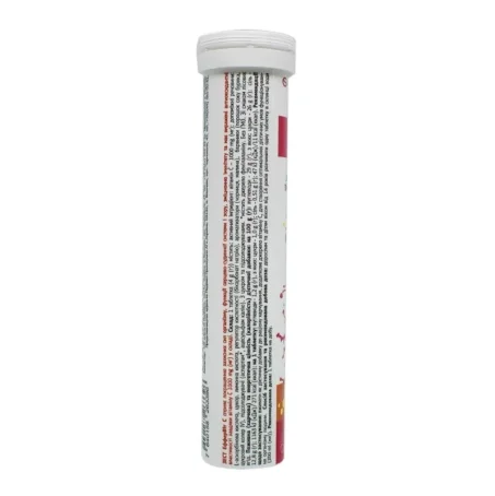 вітамін С - 1000 mg (мг); допоміжні речовини: L-аскорбінова кислота, цукор, лимонна кислота, регулятор кислотності (бікарбонат натрію), ароматизатори (чорниця, малина), барвники (порошок соку буряків, цукровий колір IV), підсолоджувачі (аспартам*, ацесульфам калію). З цукром та підсолоджувачами. * Містить джерело фенілаланіну.