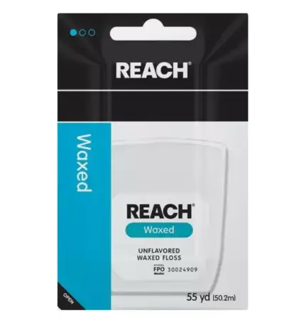• Зубна нитка Reach без смаку з воском для видалення частинок їжі та нальоту з рота