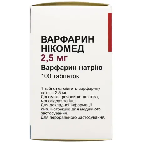 1 таблетка содержит варфарин натрия 2,5 мг;