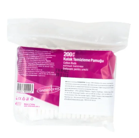 Комплектацияупаковка ватных палочек Cosmofem составляет 200 штук. Этого количества хватит на долгое время.