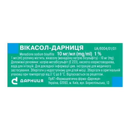 1 мл раствора содержит викасола (менадиона натрия бисульфита) 10 мг;