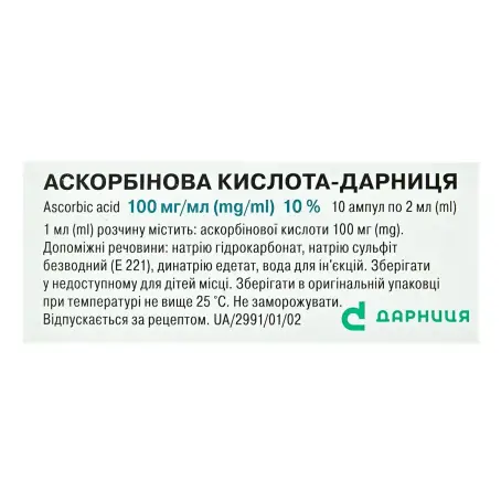 1 мл раствора содержит аскорбиновую кислоту 100 мг;