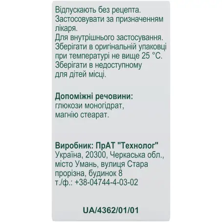 другие составляющие: глюкозы моногидрат, магния стеарат.