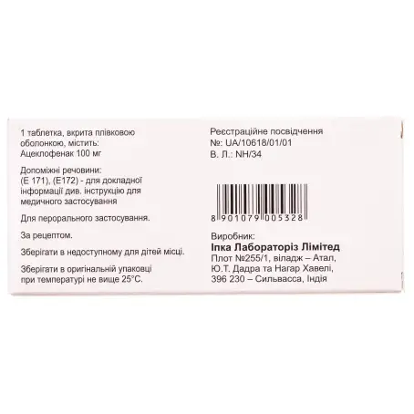 Ацеклофенак хорошо всасывается после перорального применения, его биодоступность составляет около 100%. Пиковая концентрация в плазме крови достигается примерно в течение 1,25-3 ч после применения. Время достижения максимальной концентрации увеличивается при одновременном приеме пищи, в то время как на степень всасывания это не влияет.