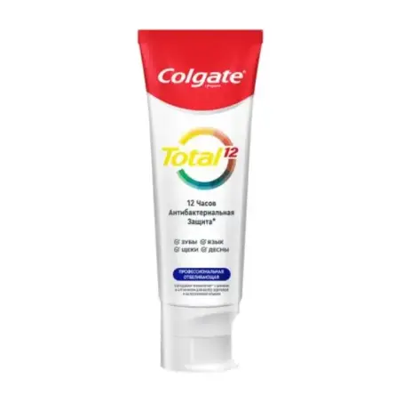 Профессиональная отбеливающая паста Colgate Total 12 воздействует в комплексе на разные виды проблем зубов и десен. Спустя несколько недель после начала использования этого средства вы можете увидеть эффект: