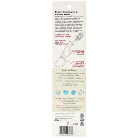 Big Brush имеет уникальный дизайн: сочетает сменную головку с нестандартно большой площадью поверхности для глубокой мягкой чистки и эргономичную ручку, специально разработанную отдельно для левшей, отдельно для правшей.